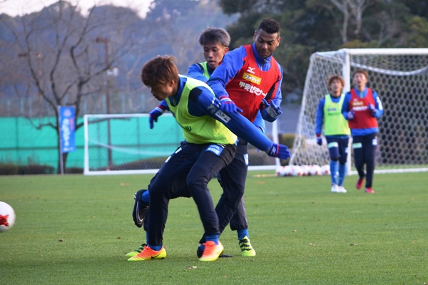 午後のトレーニングでは、チームとしての崩し方を確認した後に、ゲームを行いました。午前中のトレーニングより激しさを増し、お互いにコーチングの声もグラウンドに響き渡っていました。