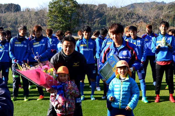 午前中の練習前には、キャンプ地である綾町の皆さまに歓迎セレモニーをしていただきました。毎年このクラブの為に、充実した練習環境の提供、そして町の特産品を贈呈していただいています。ありがとうございます。