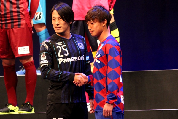 オープニングとともに登壇し、各開幕カードごとに選手が壇上に並びました。堀米選手は今シーズンの抱負を述べ、初戦で対戦するガンバ大阪の藤本選手と握手を交わしました。