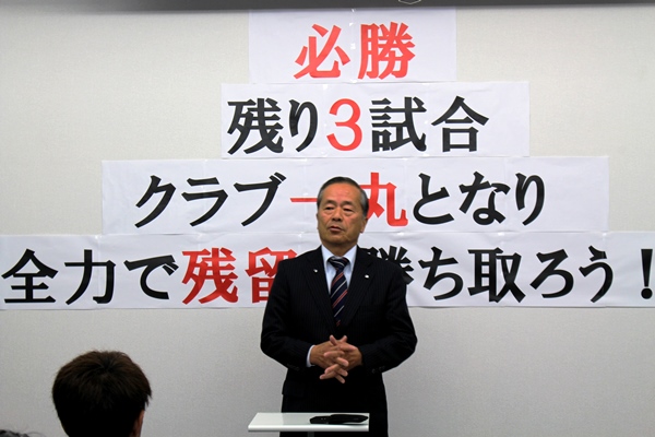 今、輿水社長が言った通りで、私は多くを語りませんが、このクラブはリーグの昇降格を繰り返しながらも、ここ5年間J1にしがみついてきました。そして、その経験値が我々にはありますので、チーム全体で頑張ってほしいと思います。