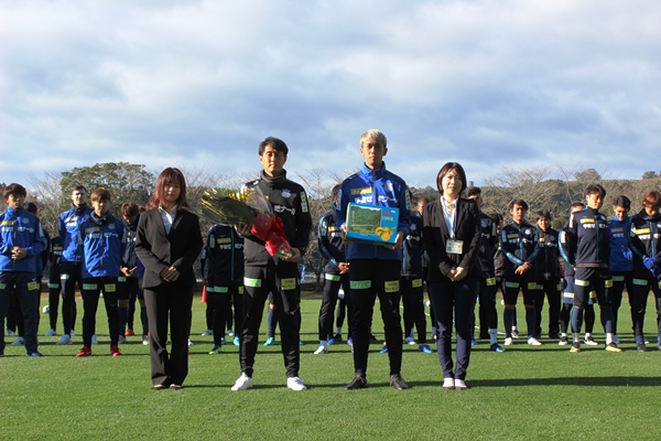 トレーニングの前に、綾町より歓迎セレモニーを実施していただきました。美味しいフルーツやお肉をたくさん頂戴しました。