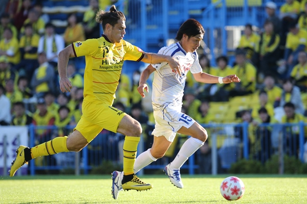 右ウイングバックに入った橋爪選手の積極的な仕掛けからペースを握ると、迎えた72分 相手DFの間にポジションをとった阿部拓選手に縦パスが入ると、得意のドリブル突破で相手を交し、左足を振り抜きゴール!素晴らしいゴールが生まれたことで、勢いを増した甲府が相手ゴールに迫っていくとアディショナルタイムに柏の鈴木選手がゴールに突進する阿部拓選手を倒し2枚目のイエローカードで退場し数的有利になり延長戦に突入する。