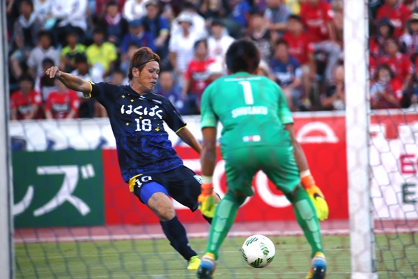 後半開始から畑尾選手に代えて福田選手、黒木選手に代えて保坂選手をピッチに送り出し、守備の立て直しを図り攻撃のチャンスをうかがう。後半13分にも森選手を投入しドゥドゥ選手とツートップとなり攻勢を強める。後半40分、福田選手がファーサイドにクロスを供給。このボールを稲垣選手が頭で折り返し、田中選手がボレーシュートを放つも、ボールはゴール左に外れてしまう。結局最後までゴールを割ることはできず、0-2で試合終了となった。