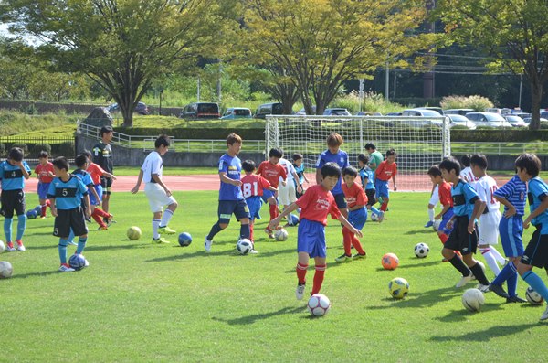 サッカー教室には県内で活動をしている約400名のサッカー少年と少女が参加し、ヴァンフォーレ甲府からは、選手とスタッフが全員参加しました。