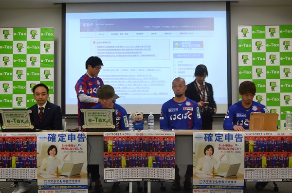 大卒2年目ということもあり、実際に初めての確定申告を行う選手が参加し、パソコンを使いながらe-Taxに挑戦してみました。